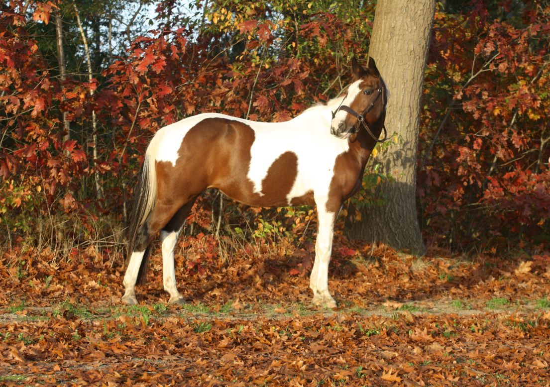 Lucky is dit jaar drachtig van een bonte Paint-hengst en zal eind april/begin mei haar veulen krijgen. We verwachten een bijzonder en kleurrijk veulen — een echt ‘cowboy veulentje’.