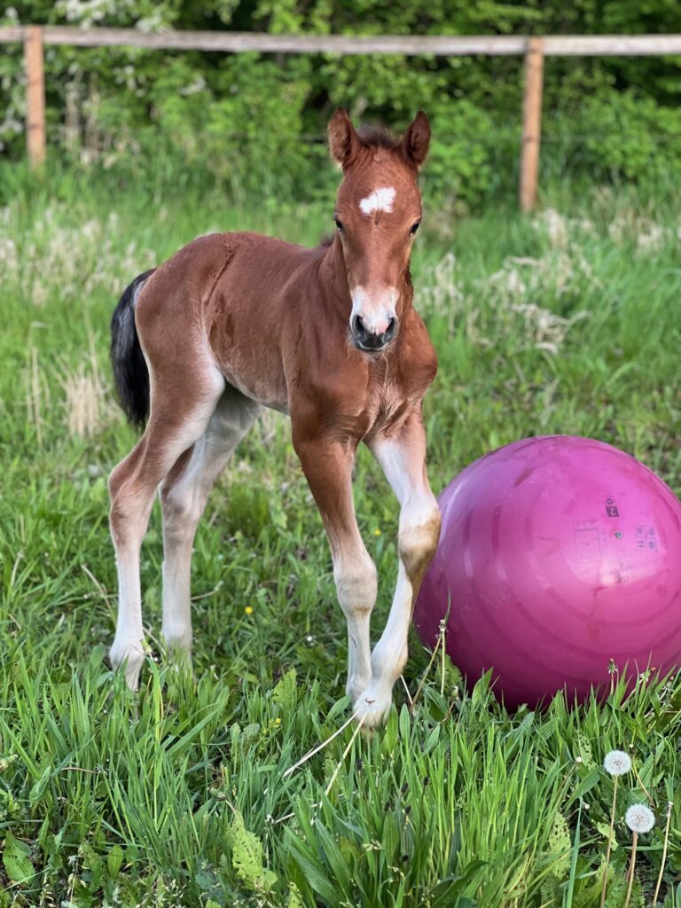Éros is het eerste veulen van Jamina dat bij ons op de stoeterij is geboren. Jamina werd drachtig aangekocht en daaruit werd Éros geboren. Wat een plaatje!